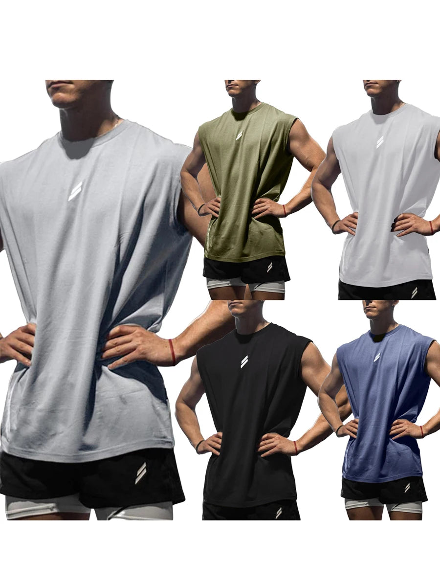 Printed, breathable mesh fabric, round neck, sleeveless, simple style, loose fit, sports t-shirts for men; Muscle shirts for men are the best muscle training tank tops for your fitness and workout